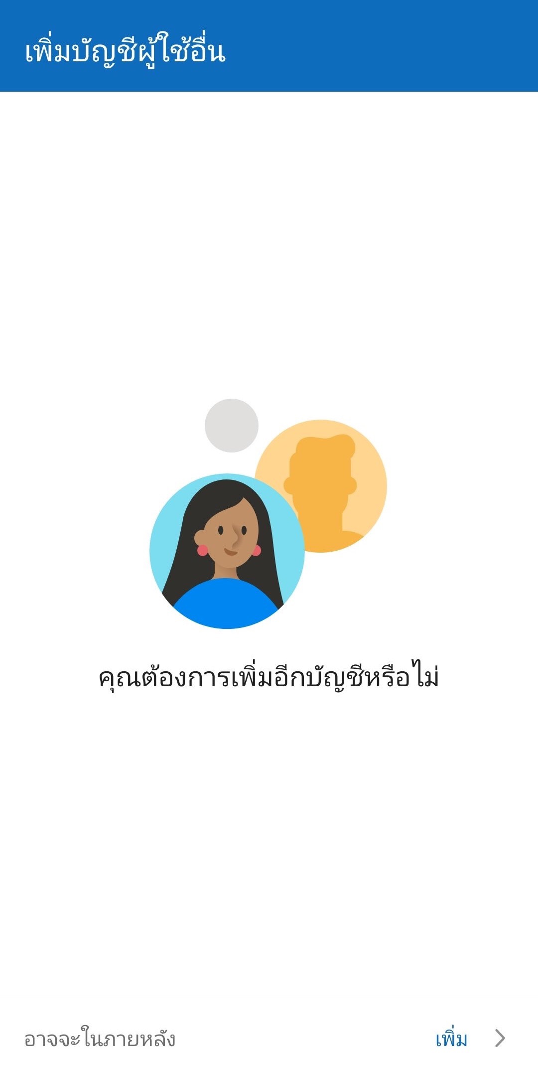 - เมื่อขึ้นว่า "เพิ่มบัญชีแล้ว" ให้กดข้าม อาจจะในภายหลัง