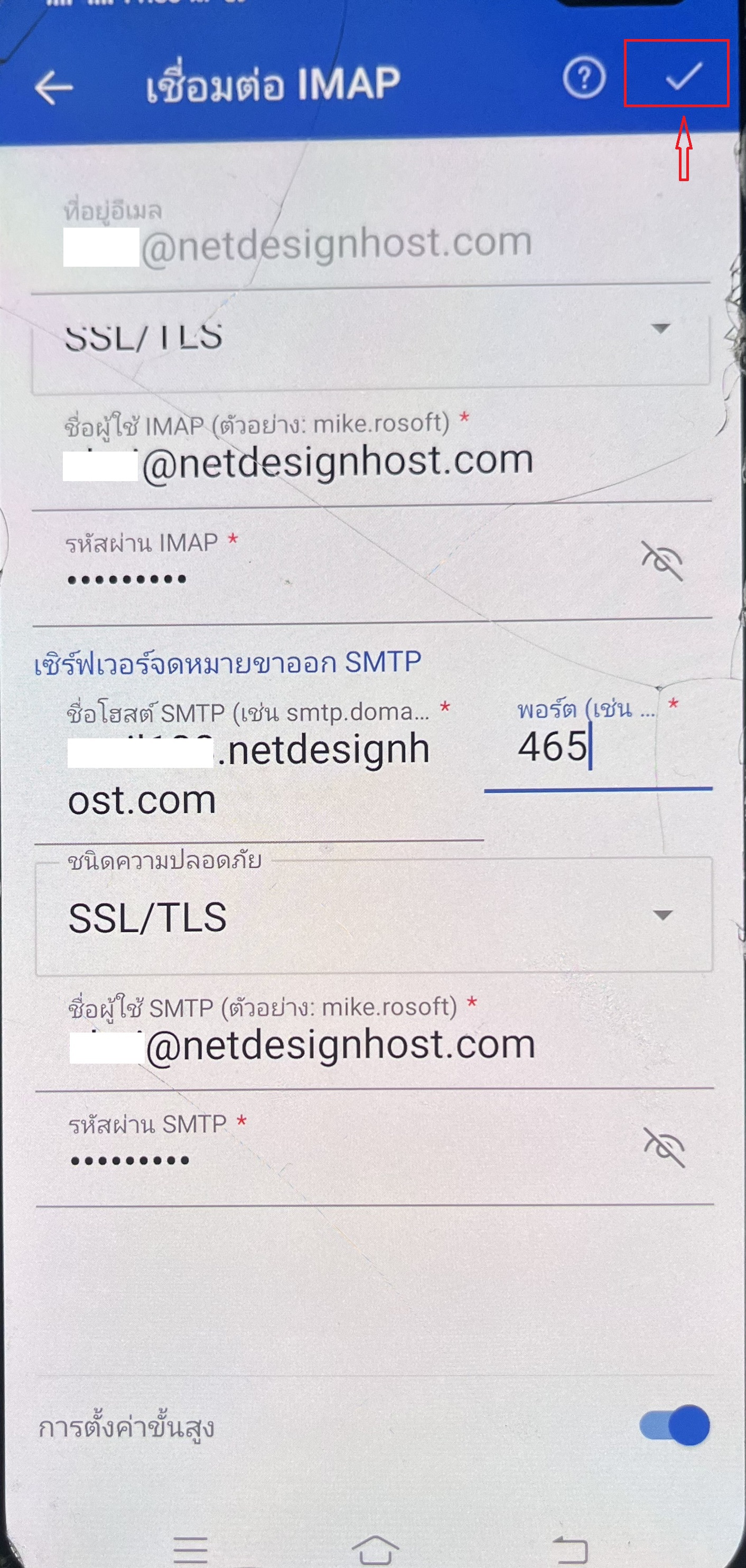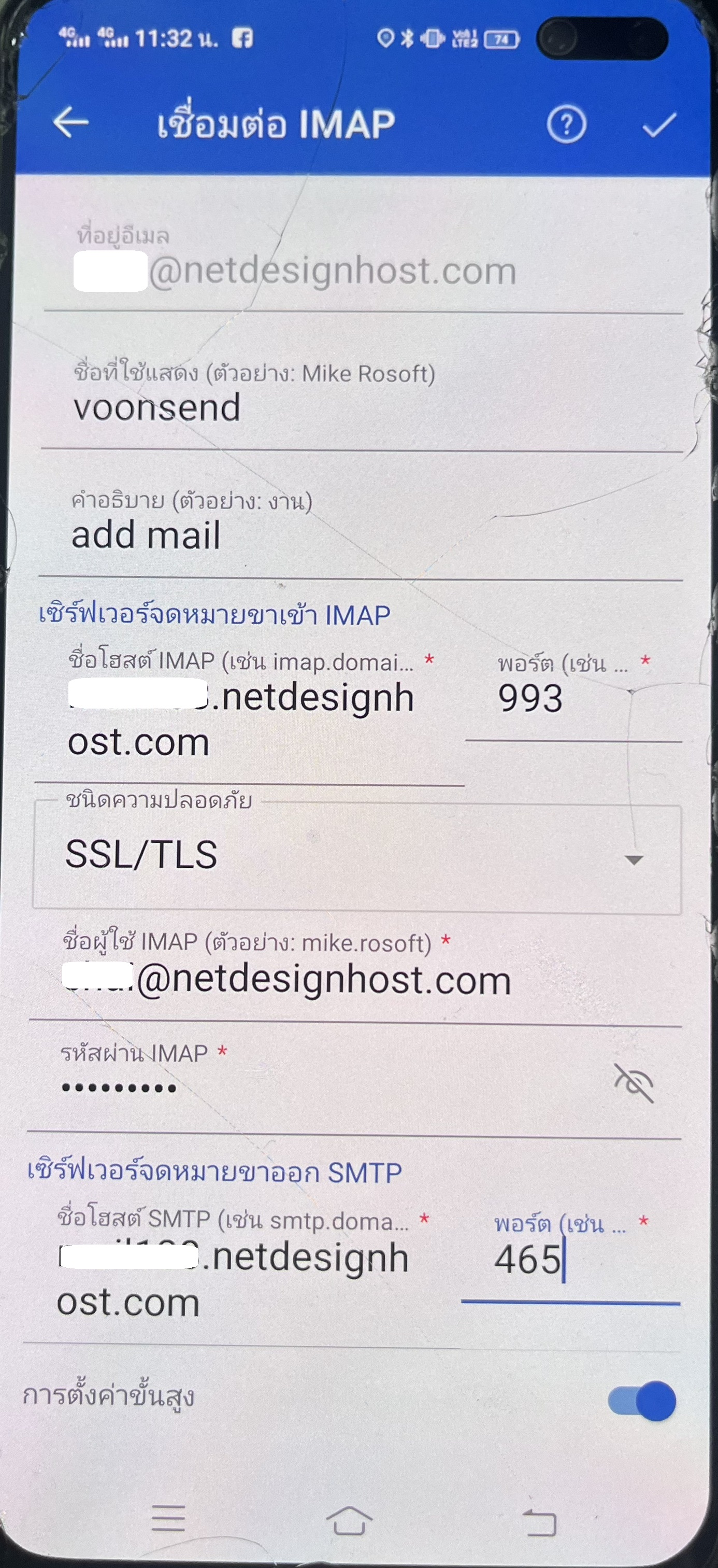 - IMAP Server: mailxxx-04.zth.netdesignhost.com (ตัวอย่าง)