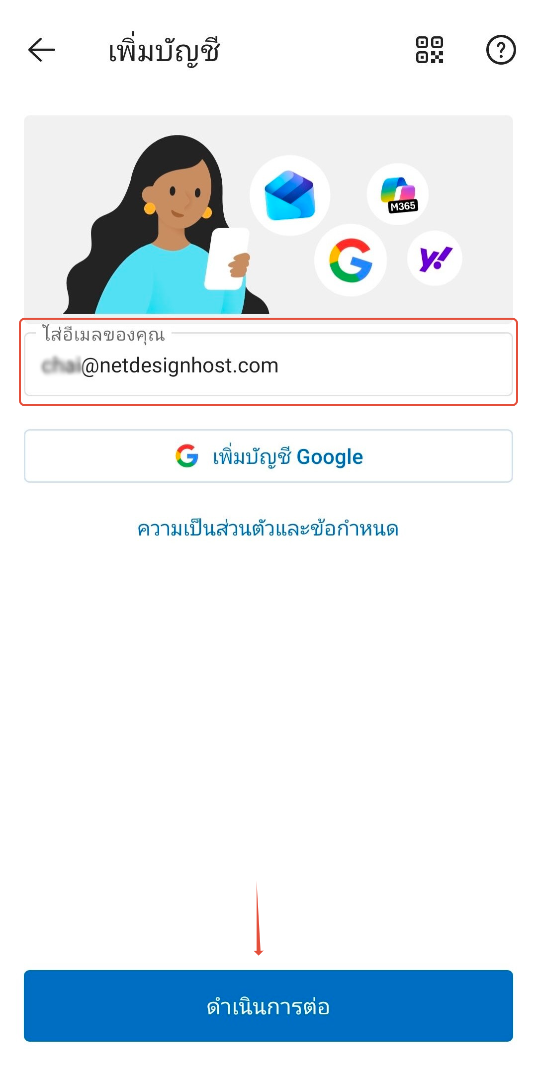ขั้นตอนที่ 2: เพิ่มบัญชีอีเมล