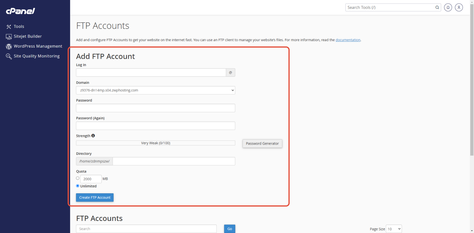- กดที่เมนู FTP Accounts เพื่อเข้าไปกำหนดตัว FTP