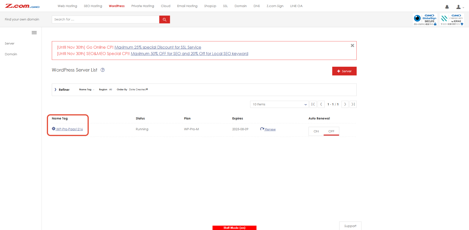- กดที่ในรายการ Name Tag ที่ต้องการเข้า Control Panel