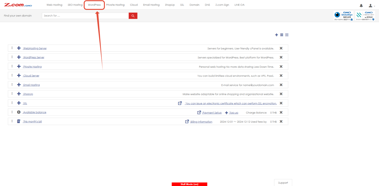 ขั้นตอนที่ 3: คลิกไปที่เมนู WordPress
