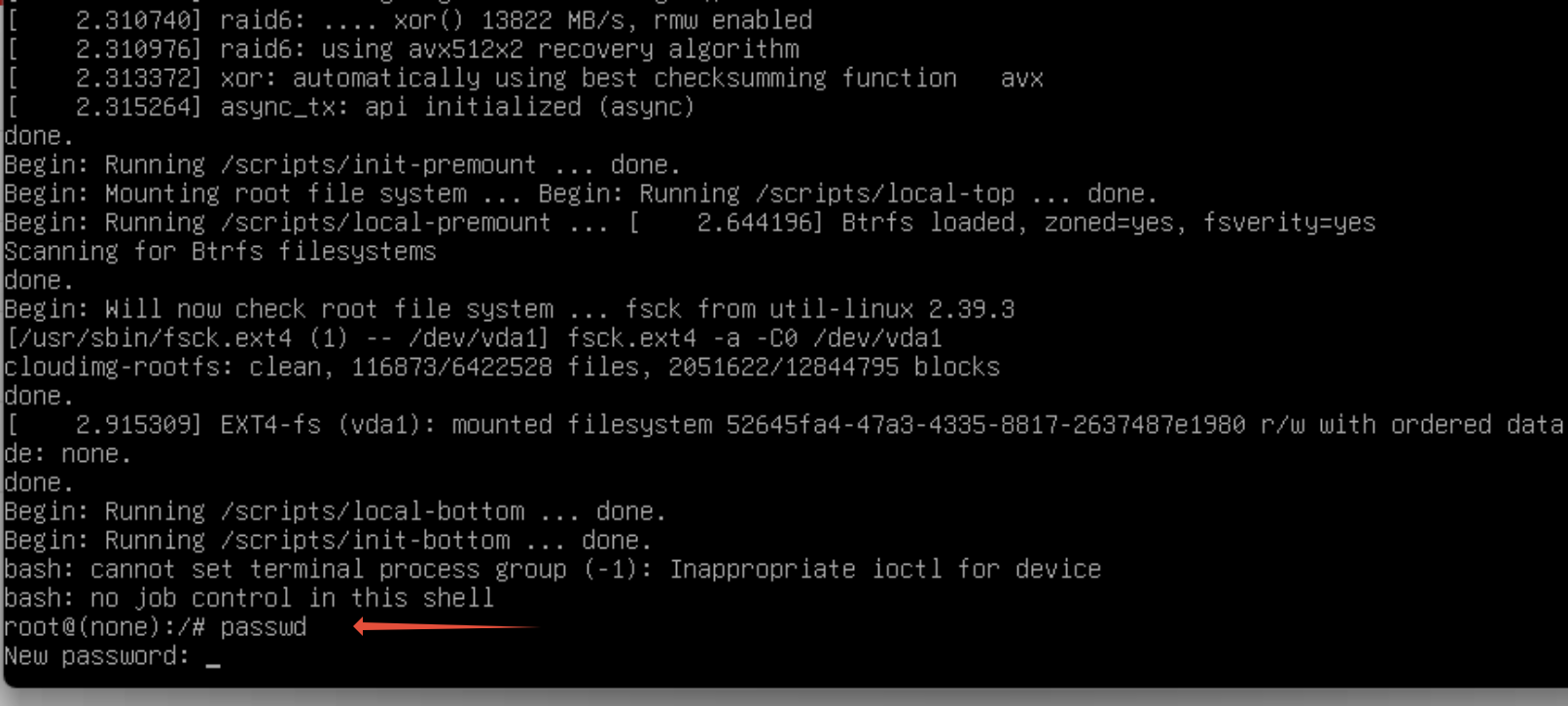 • จากนั้นพิมพ์คำสั่ง  passwd  ตามภาพด้านบน และกด enter