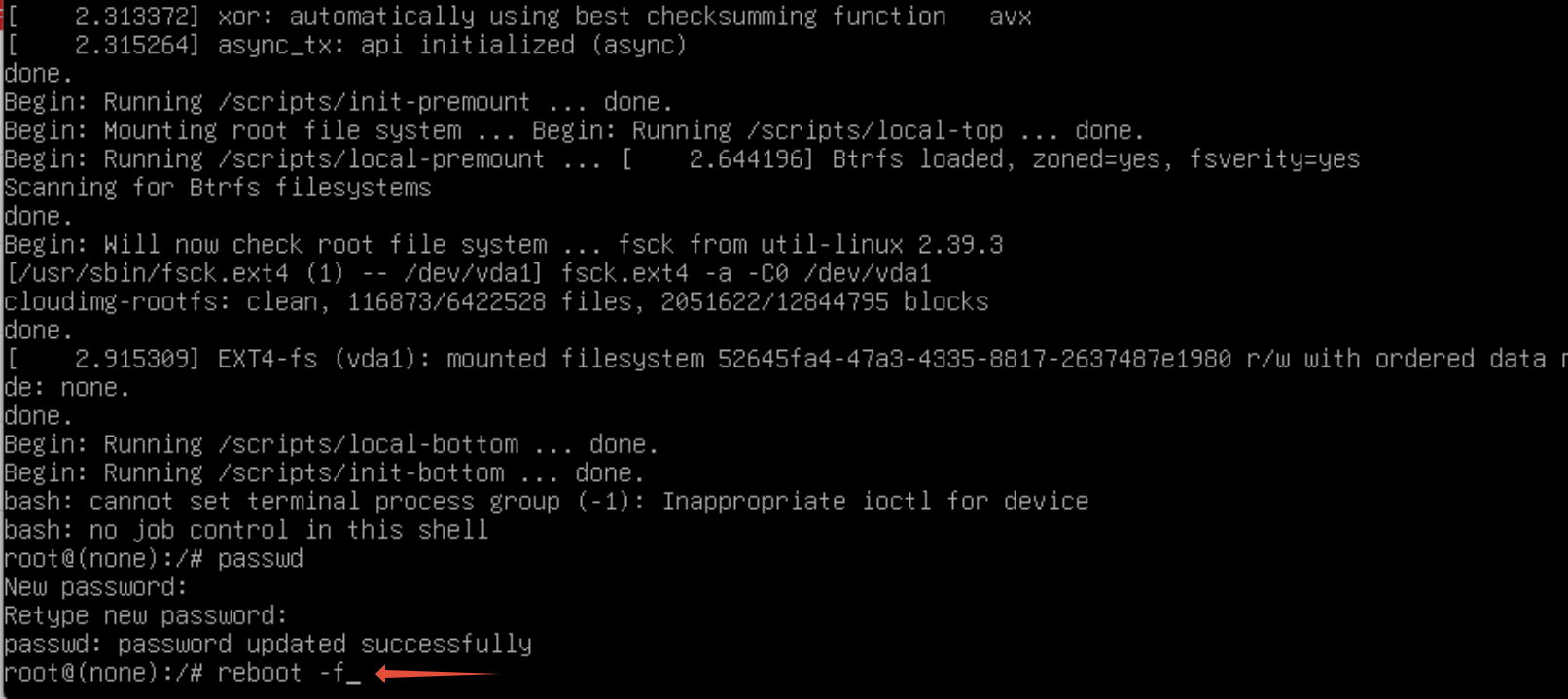 • จากนั้นพิมพ์คำสั่ง reboot -f  เพื่อ restart server อีกครั้ง...