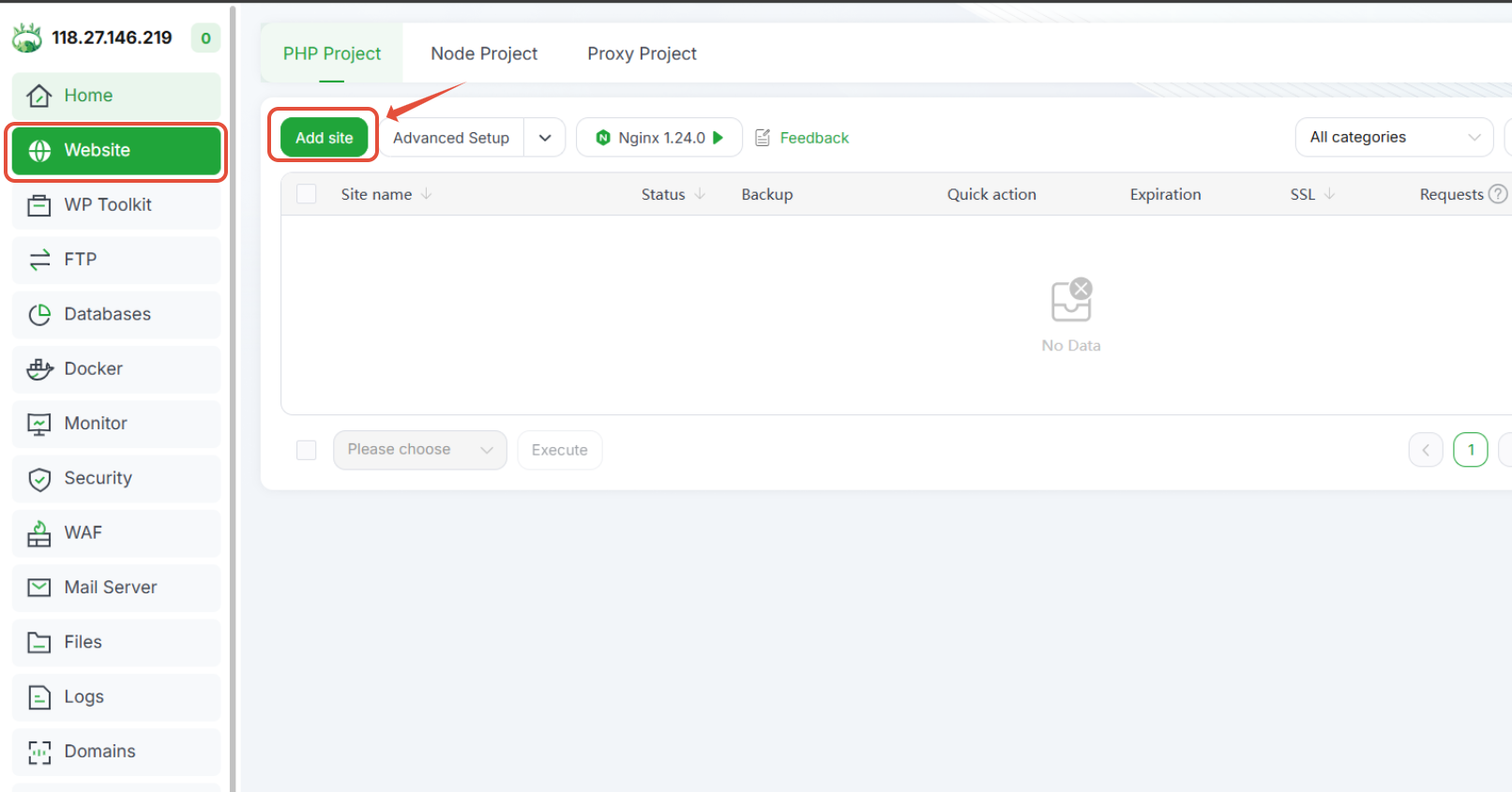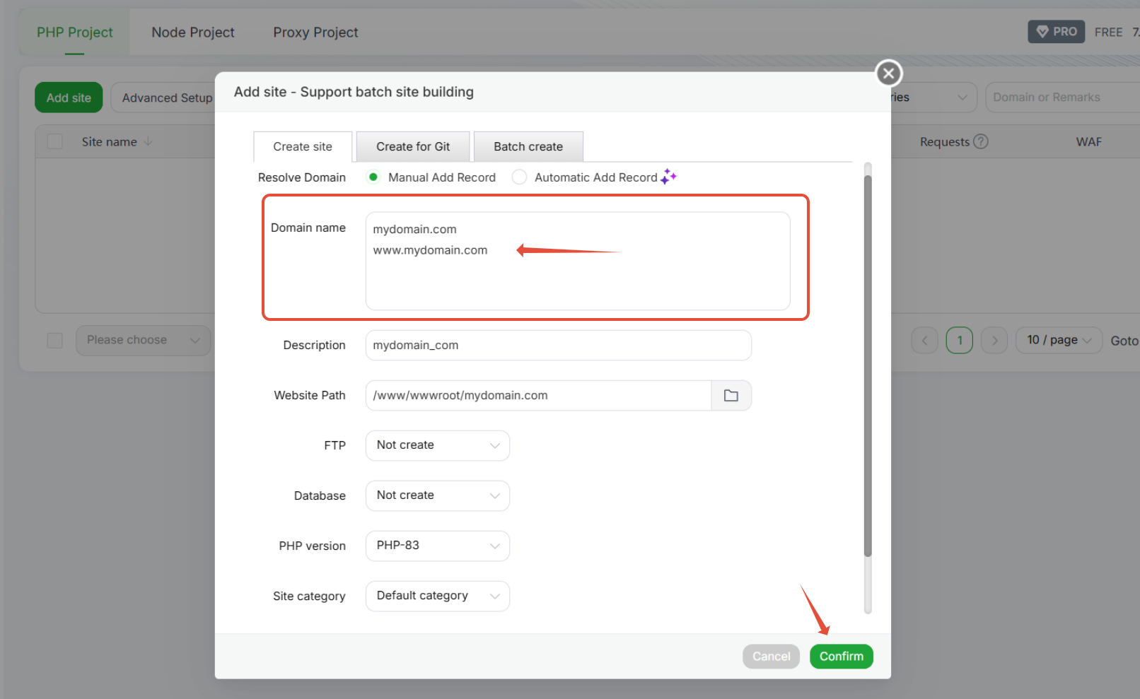 - จากนั้นเป็นขั้นตอนการเพิ่มโดเมน เข้า aaPanel