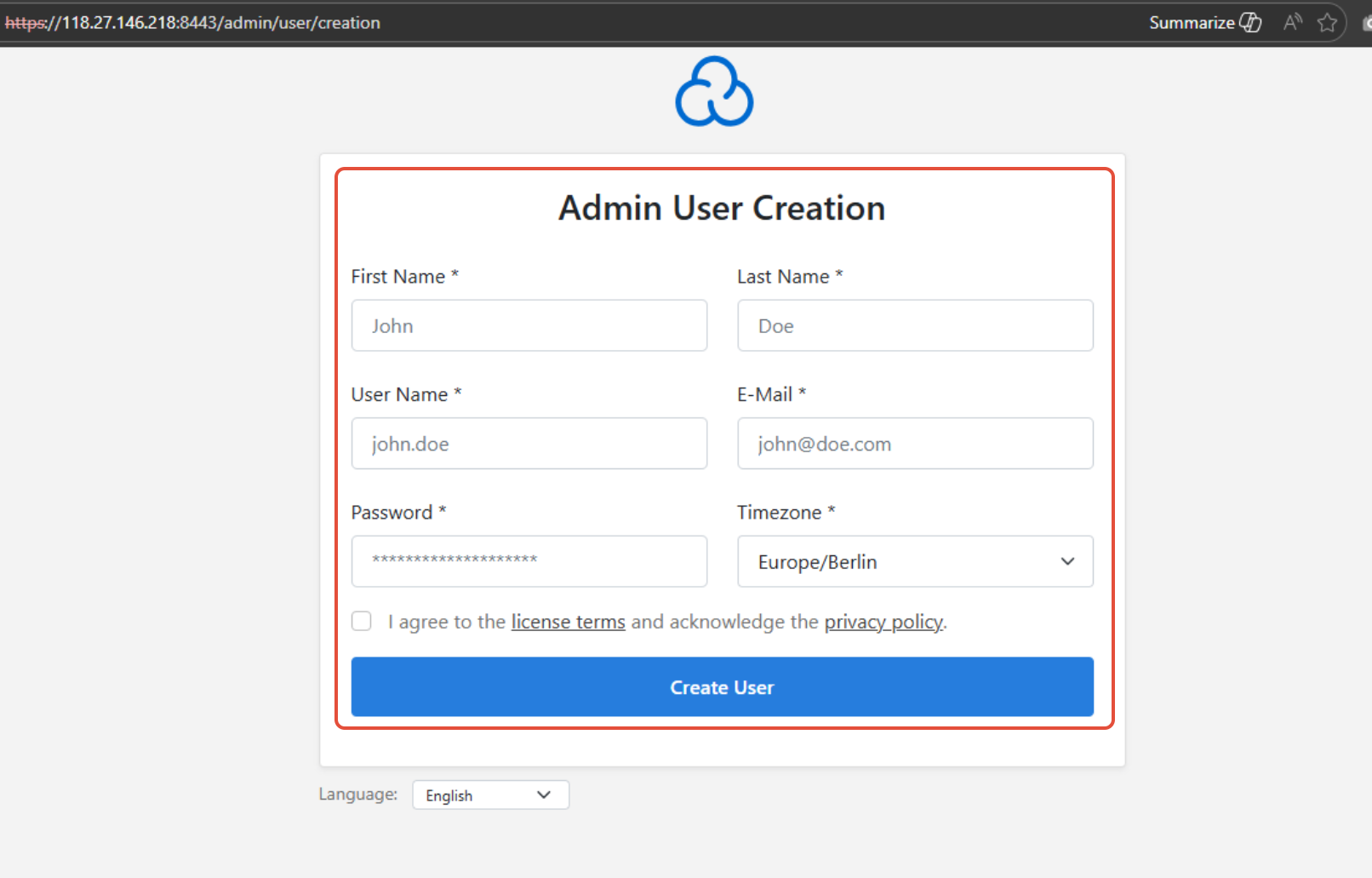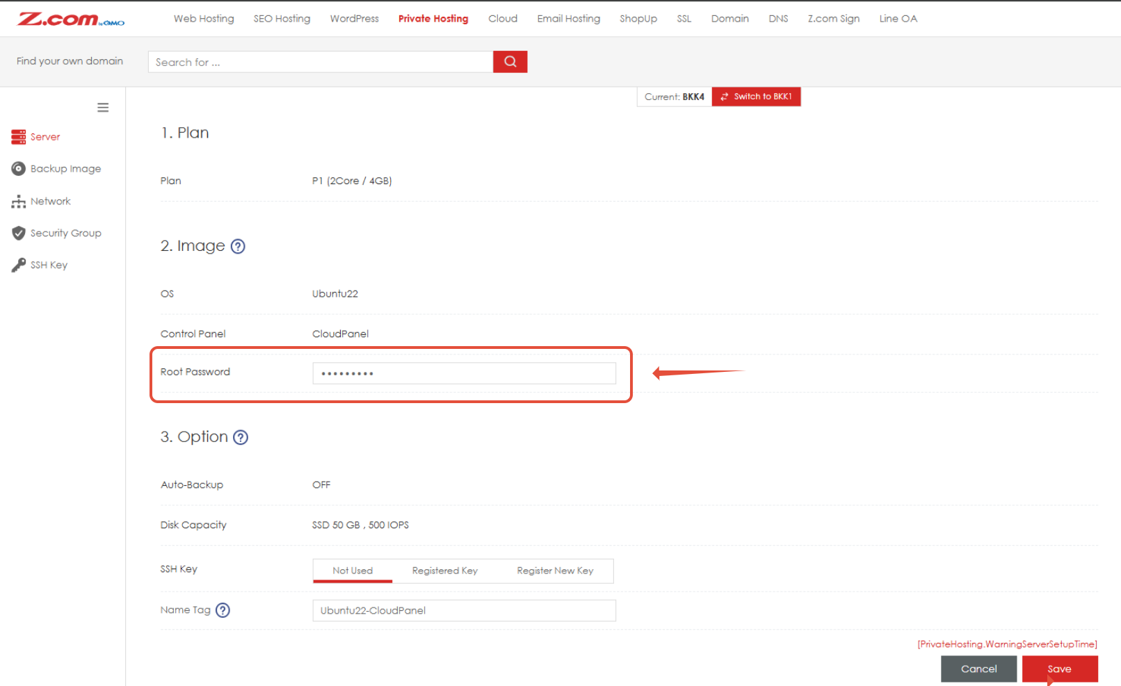 - ช่อง User Name , Password (สำคัญ) เพื่อใช้ในการ login เข้า CloudPanel