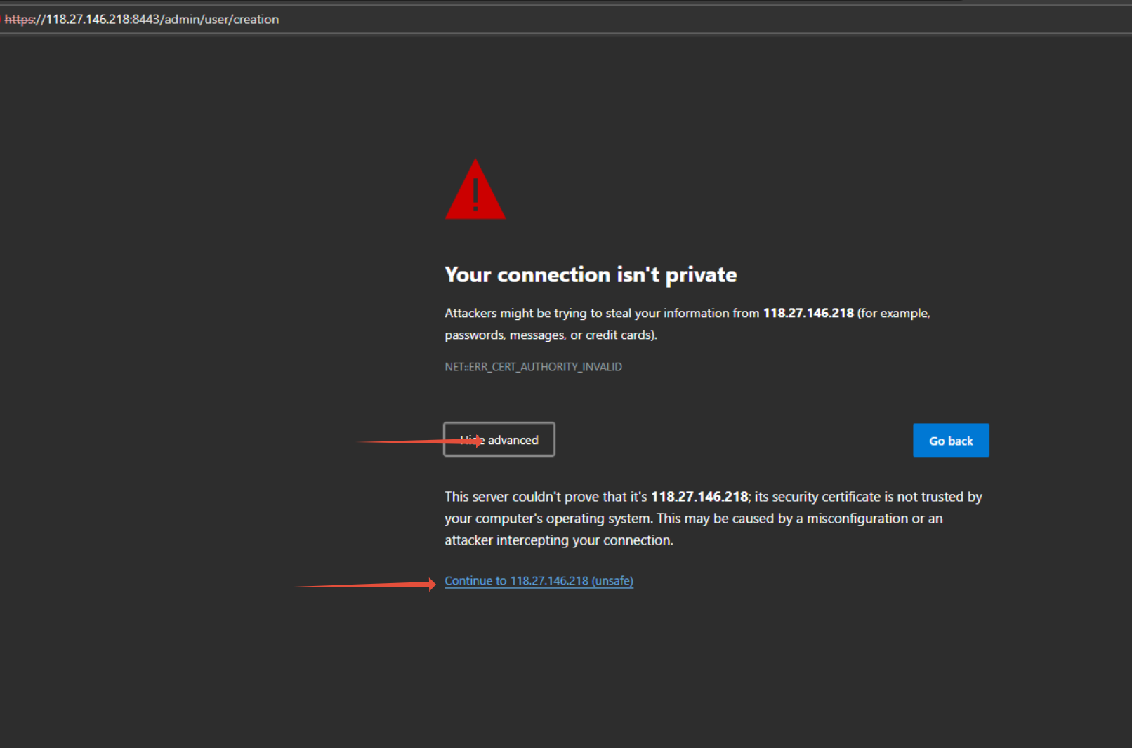 - เลือก Continue (unsafe)