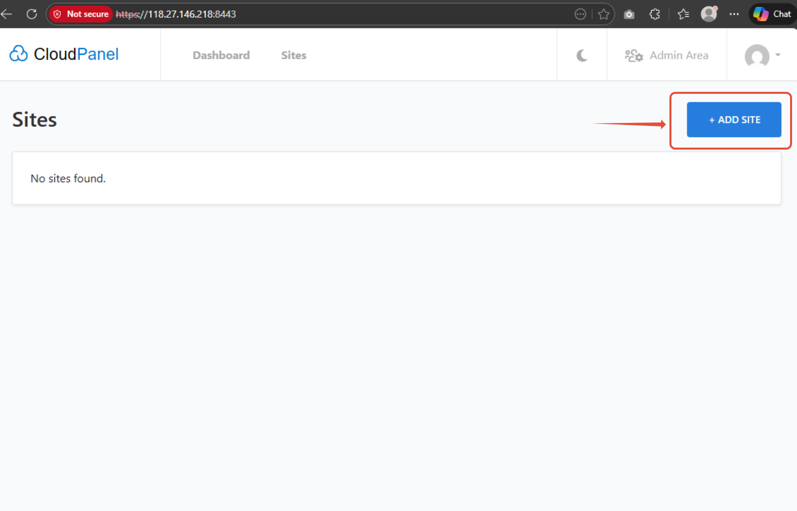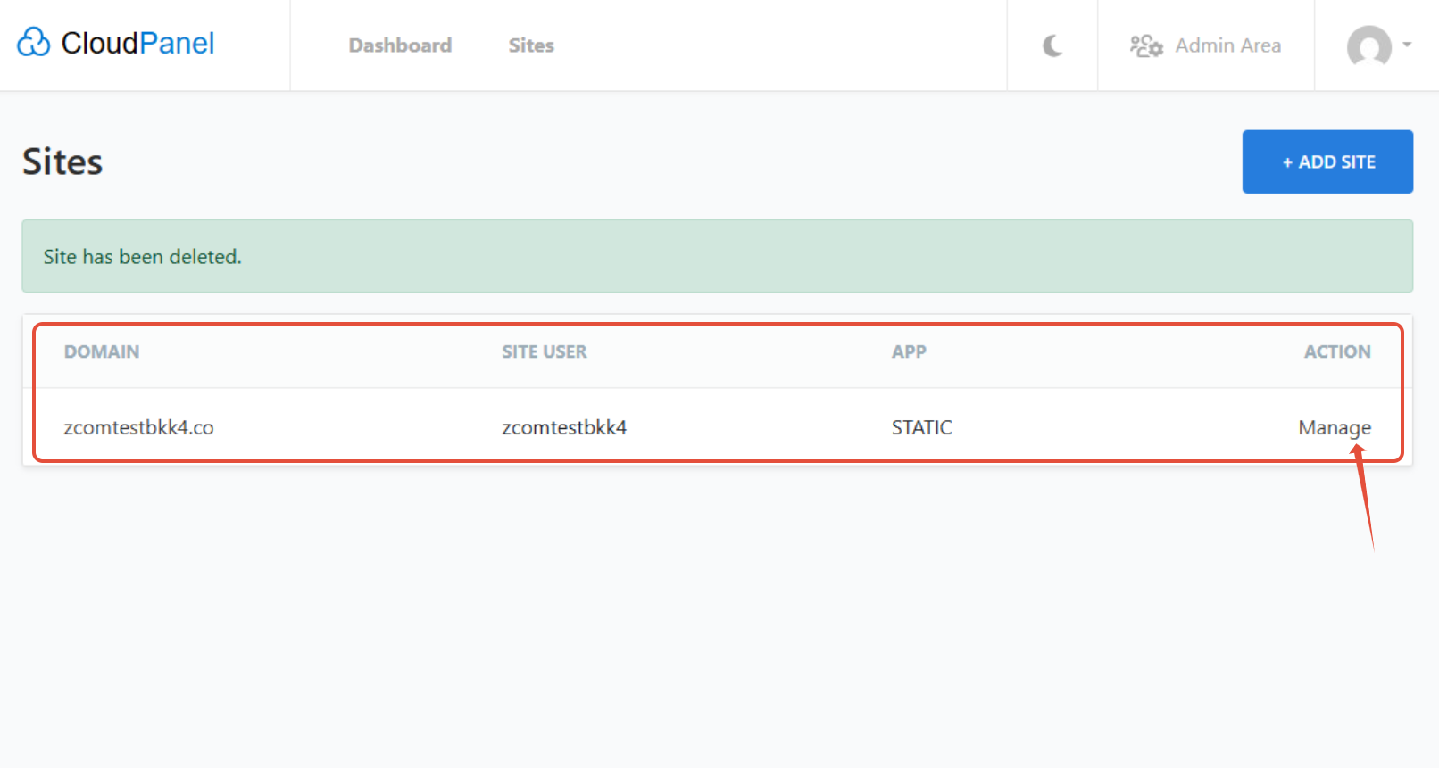 - เมื่อ login เข้ามาแล้ว ให้ทำการคลิกที่ + ADD SITE เพิ่มโดเมนที่เราต้องการ จะใช้งาน