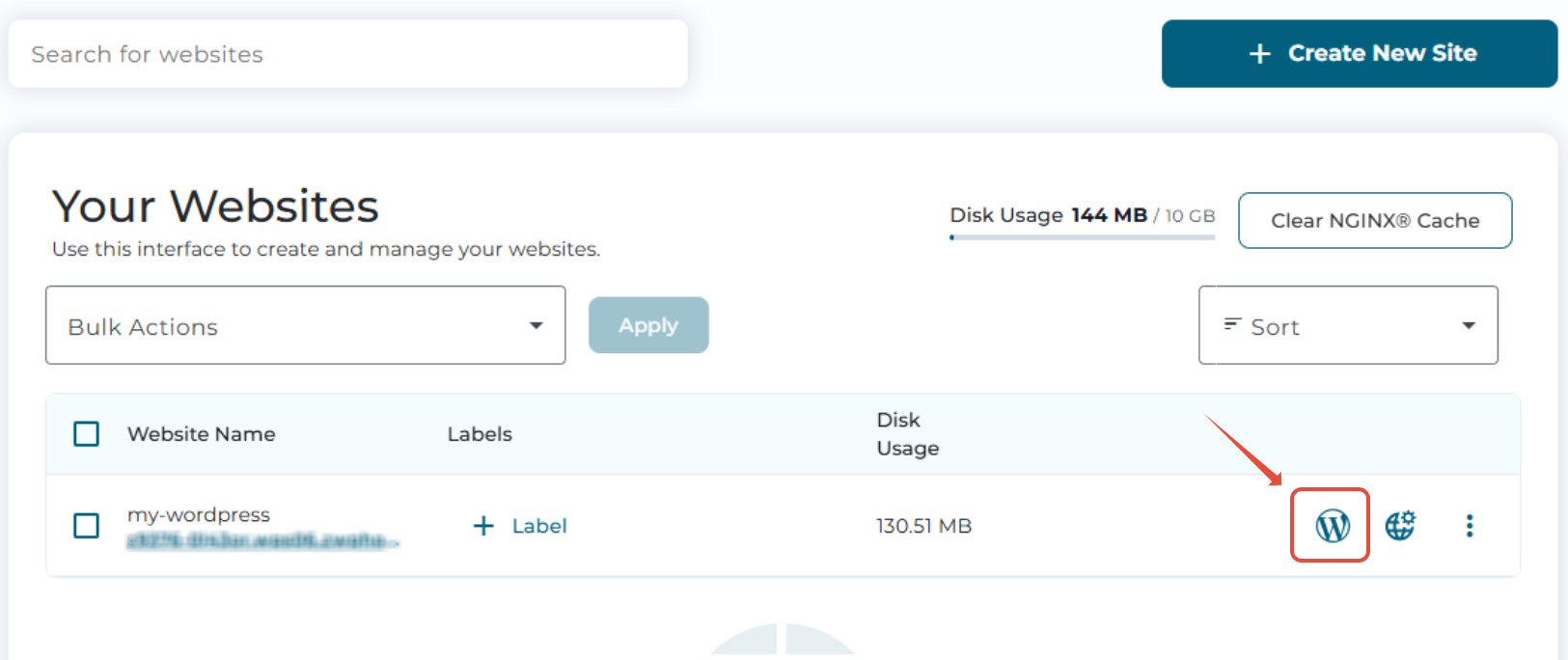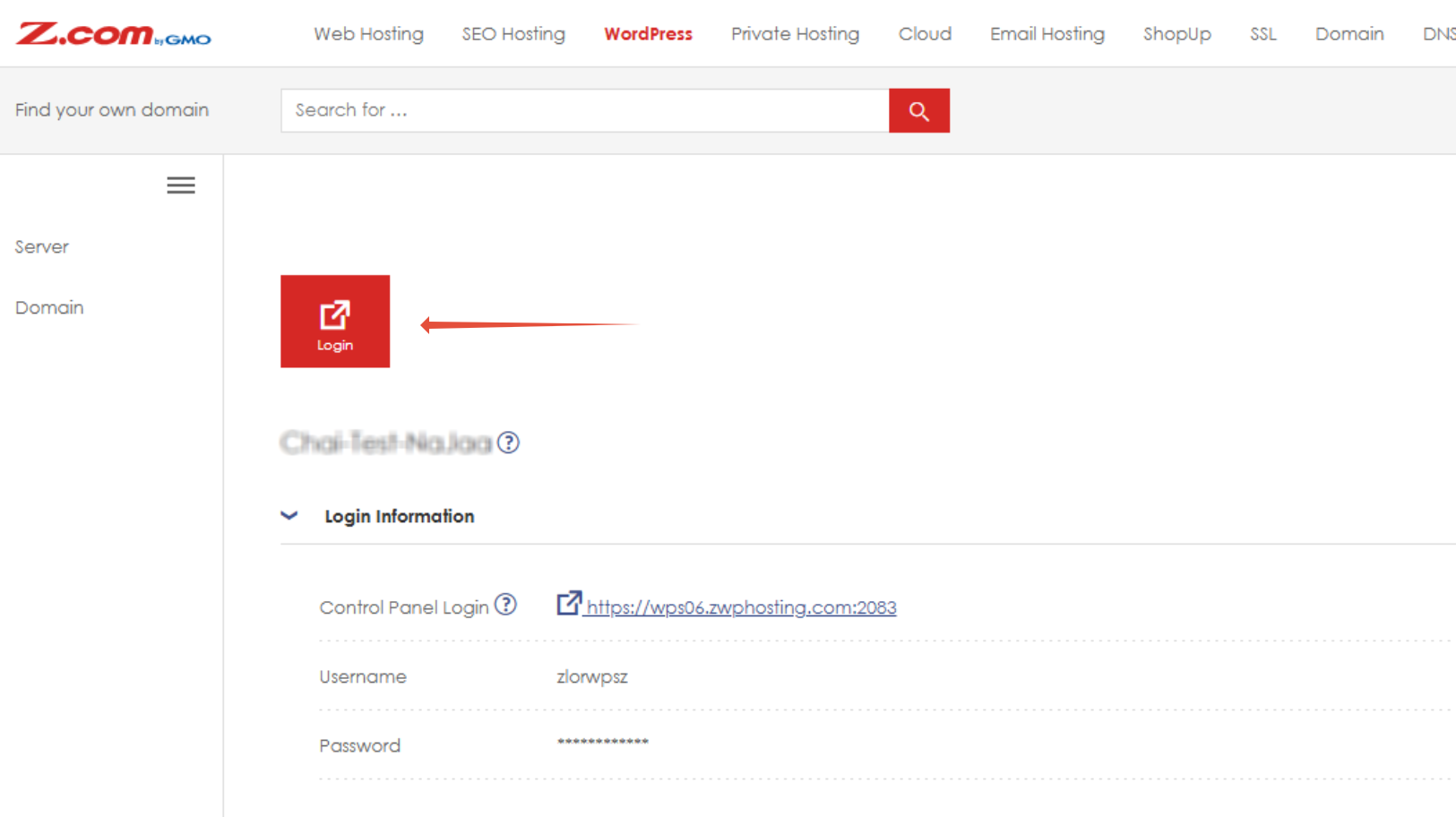 - เลือกโดเมนที่ต้องการ และคลิก Login to WordPress Admin