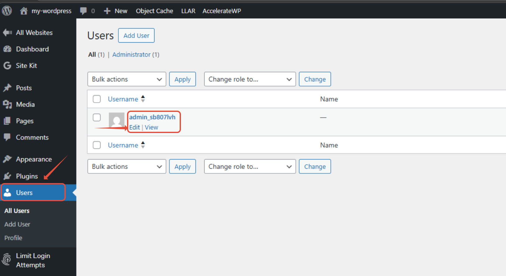 - ไปที่เมนู Users และเลือก Edit ในบัญชีที่ต้องการแก้ไข